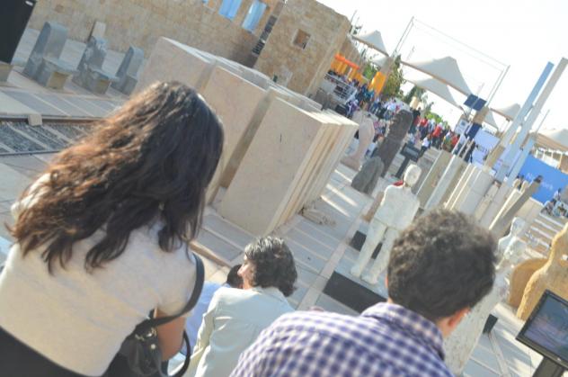 مع زوار المهرجان حولين منحوتات من تصميمها إلي كانو بقلب القريه الثقافيه وحدثتهم عن الهامها والتصميمات من ابتكارها